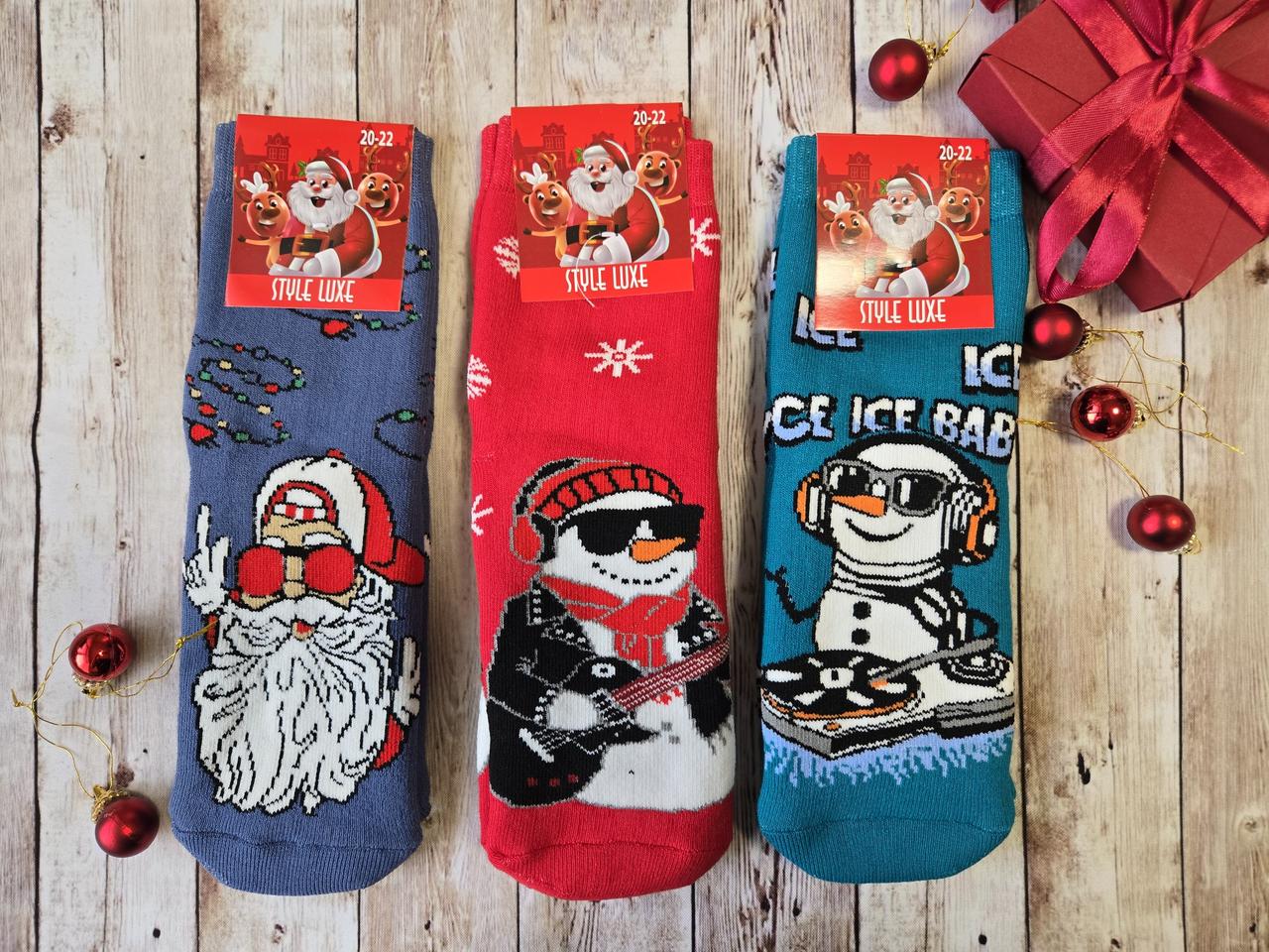 Дитячі шкарпетки махрові новорічні Стиль Люкс 18-20 к-6 Santa, сніговіки музіканті